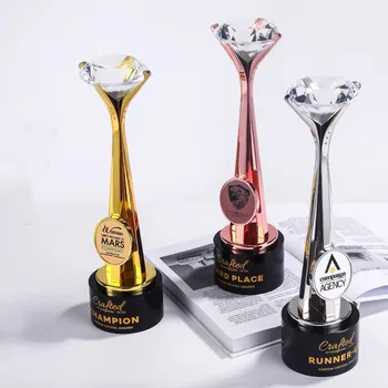 Wholesale New Gold Silver Copper Crystal Diamond Trophy UV Printing Diamond Crystal Material Metal Trophy MH-N221
