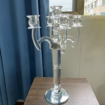 Unique 5 Arm 50cm H Glass Candelabra for Wedding Table Decorations MH-TZ0698