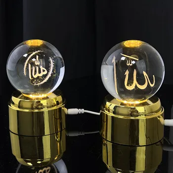 Light up Crystal Ball Laser Allah Mohammed Islamic Souvenir with Rotating Plastic Led Light Base MH-Q0427