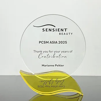 Customize Engraving Crystal Yellow Leaf Base Crystal Trophy Awards MH-N311
