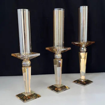 Tall Glass Cylinder Candle Holder Crystal Pillar Candle Holder MH-TZ0788