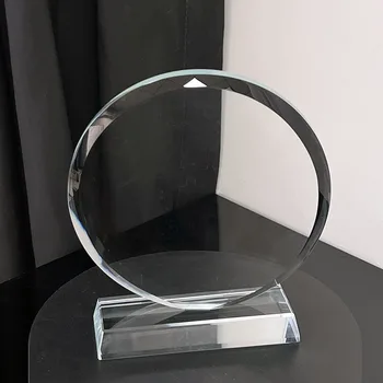 15X17cm Crystal Round Glass Awards Plaque Trophy with Clear Crystal Base MH-N310