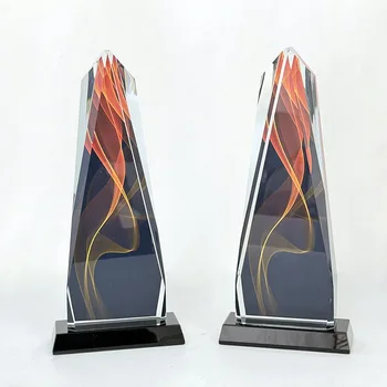 Customized Color Printing Crystal Tower Trophy Award With Black Base MH-N503