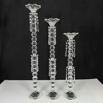 Sets of Three Tall Crystal Tube Candle Holder for Wedding Table Decoration MH-TZ0608