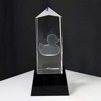 Customize 3d Laser Duck Engraving Crystal Tower Cube Paperweight MH-TF0309