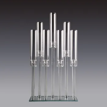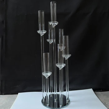 5-Head 80cm Crystal Wedding Candelabra with Glass Tube Candlestick Holder for Wedding Table Decoration MH-TZ0661