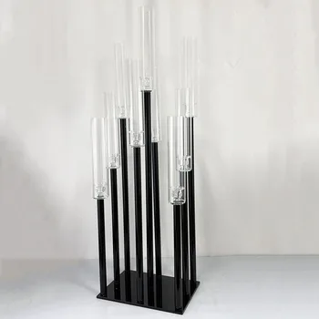Black 9 Arms Crystal Wedding Candelabra Wedding Centerpieces Candle Holder With Glass Tube MH-TZ0849
