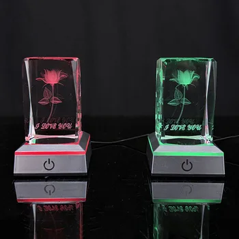 3D Laser Engraved Rose Carnation Flowers Crystal Cube With Led Light Base Valentine's Day Mother's Day Souvenirs MH-TF0310