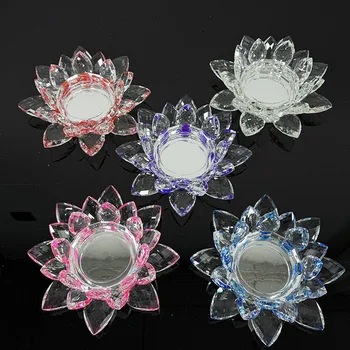 Big 20cm Multi Color Pink Blue Purple Red Clear Crystal Lotus Flower Candle Holder Candlestick MH-TZ0848