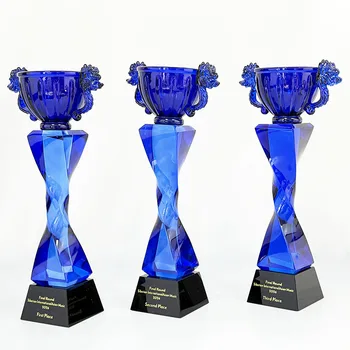 Customize Engraving Dragon Decoration Blue Crystal Cup Trophy Award MH-N571