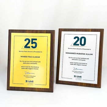 Custom Printing Gold Silver Plate Wooden Certificate Plaque Business Trophy Award Plaque Awards MH-N575