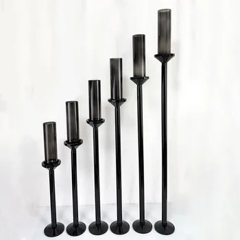 Set of Six Black Crystal Glass Hurricane Candle Holder Long Stem Candle Holder Stand for Wedding Decoration MH-TZ0850