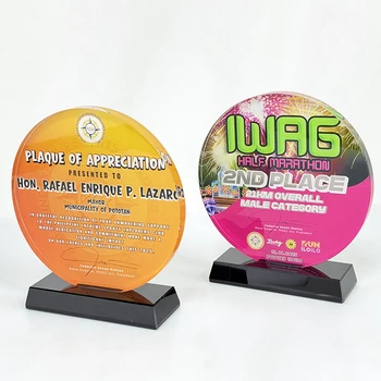 Full Color Printing Round Shape Crystal Trophy Awards Glass Trophy Plaque MH-N572