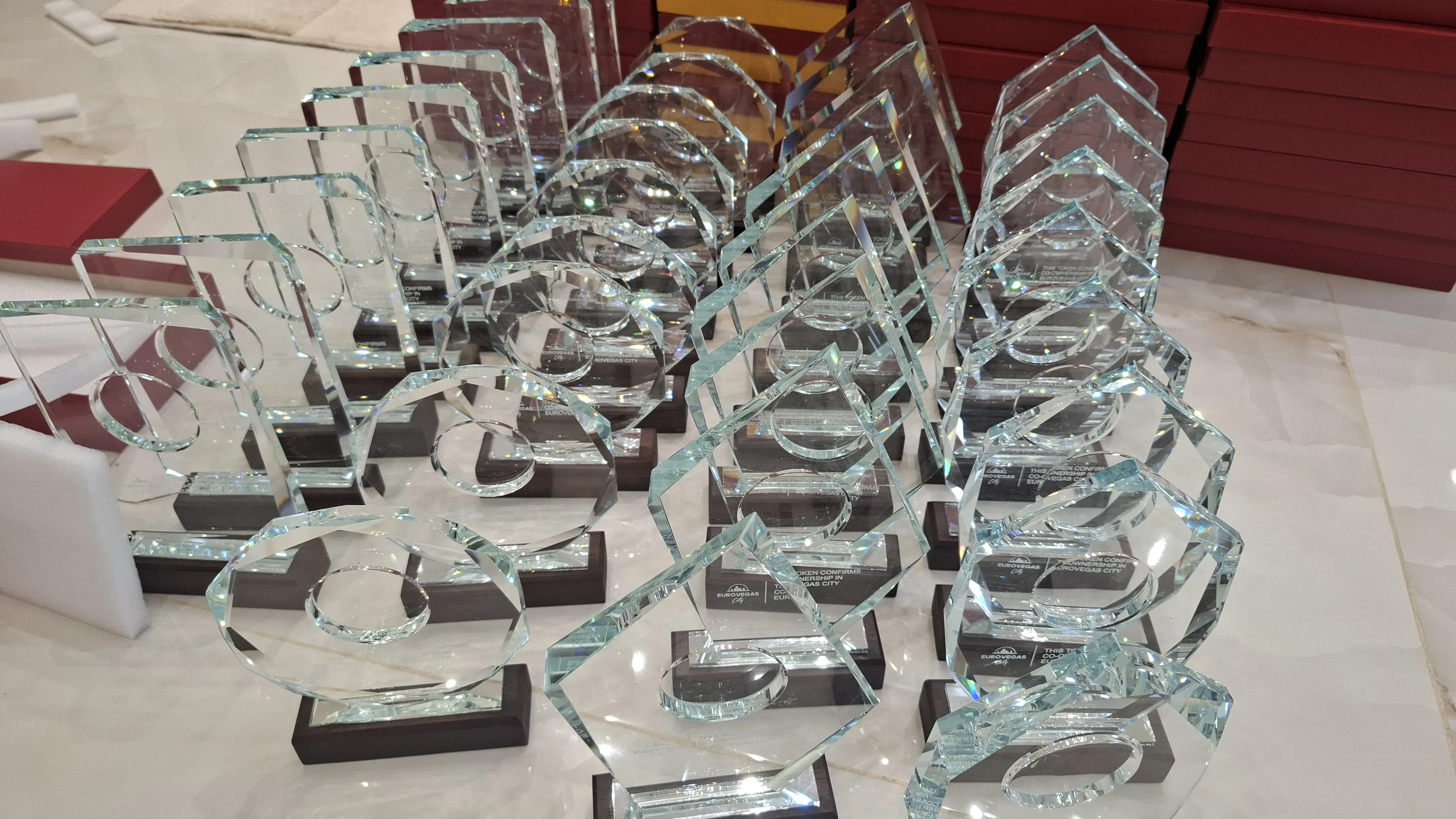 Premio trofeo a goccia di cristallo 14x21x4cm