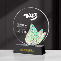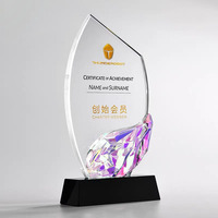 Custom Regenboog Blad Kristal Trofee Awards Graveren Glas Award Trofee Met Regenboog Kristallen Blad Awards MH-N277