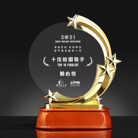 MH-N295รางวัลแผ่นโลหะคริสตัลดาวถ้วยรางวัลแกะสลักโลหะสีทองแบบกำหนดเอง