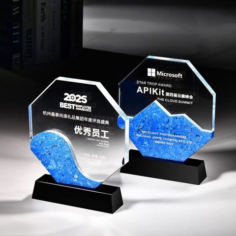 แผ่นโลหะรางวัลถ้วยรางวัลทรงแปดเหลี่ยมคริสตัลพร้อม MH-J591ตกแต่งหินอ่อนสีฟ้า