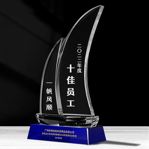 MH-N294รางวัลถ้วยรางวัลเรือใบคริสตัลสีน้ำเงินแกะสลักตามสั่ง